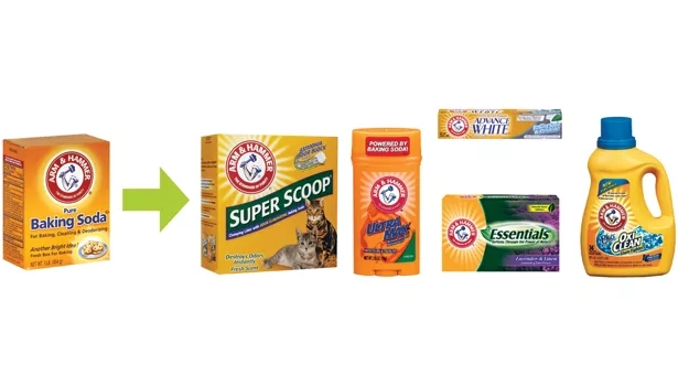 آرم اند همر (Arm & Hammer) از جوش ‌شیرین به محصولات شوینده و حتی بو ‌گیر حیوانات خانگی.