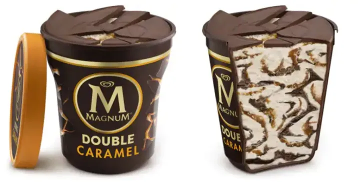 برند مگنوم با ارائه‌ ی بستنی در سطل‌ های شکلاتی ، مشتری را تشویق می کند تا با فشردن ظرف، لایه‌ ی شکلاتی بالا را بشکند. صدا و حس ترک خوردن شکلات ، توانسته یک تجربه ‌ی برند منحصر به فرد ایجاد کند.